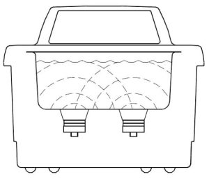 • وقتي امواج صوتي از ترانسديوسرهاي پيزو الكتريك درون محلول داخل مخزن منتشر مي‌شوند، فشارهاي بالا و پايين متناوب در محلول ايجاد مي‌كنند.